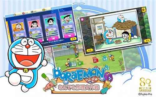 3、角色互动:游戏中融入了原版的配音和角色形象,玩家可以与哆啦A梦及其朋友们进行互动,共同完成修理任务。