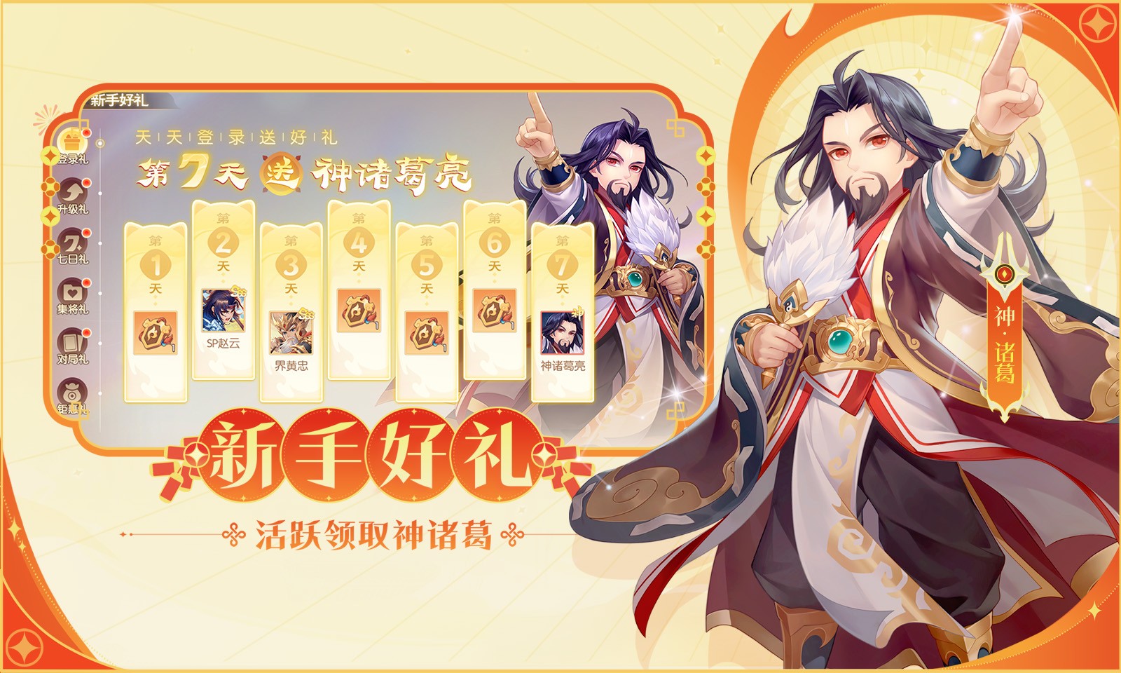 无福利不欢乐!《欢乐三国杀》登陆福利,一键拉满!登陆7天即可获得30抽,超多武将一网打尽!连续登陆14天,更有神诸葛亮等你来领!每日海量在线奖励,大量招募令任性送!除此之外,还有超多白嫖福利等你来拿!快来和好友一起,随时随地欢乐开黑吧!