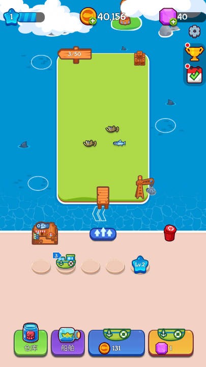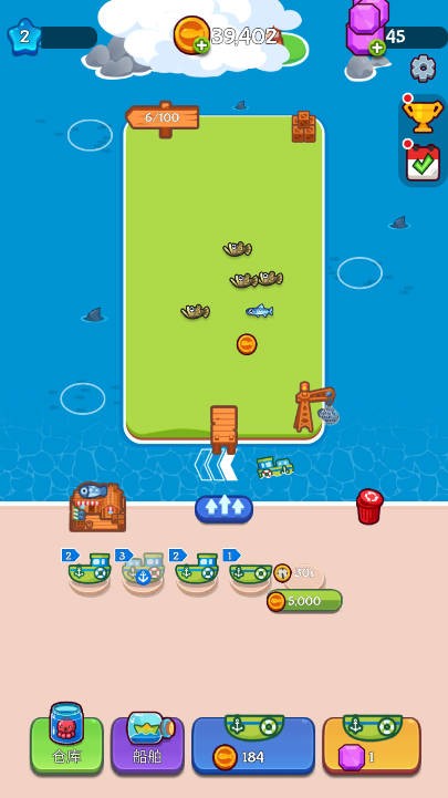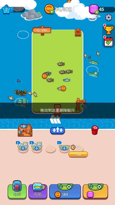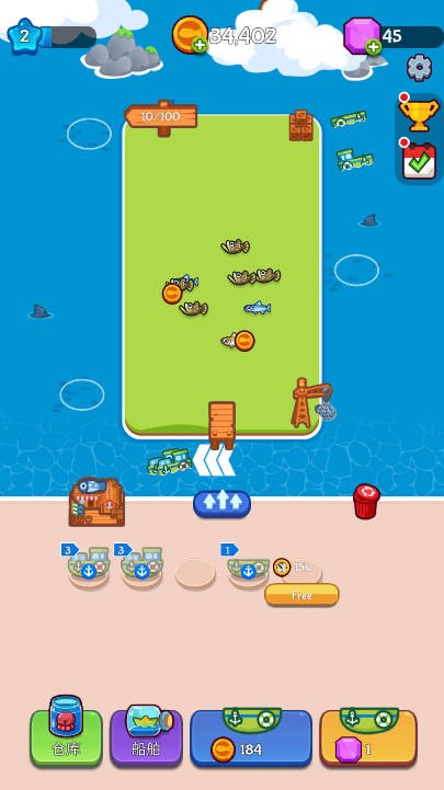 玩家可以通过合并相同等级的渔船,提升其等级和捕捉能力。更高级的渔船能够在更深的海域进行捕捞,捕获更大、更珍贵的鱼类,甚至挑战巨型海怪。每次合并不仅提升捕捞效率,还能解锁新类型的渔船,增加游戏的多样性。
