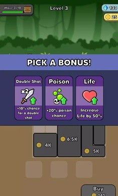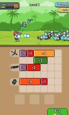 3.获得的金币可以用来提升角色的攻击力或其他属性,玩家可以点击底部的Buy增加数值。