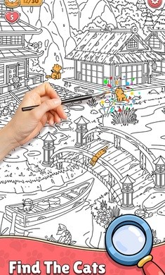 1.采用温馨的卡通手绘风格,每个场景都像是一幅精美的插画,让你在寻找猫咪的同时,也能享受视觉上的盛宴。