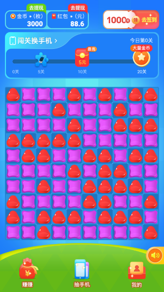 2、轻松的点击几下就能消除完所有方块,然后过关拿到红包奖励。