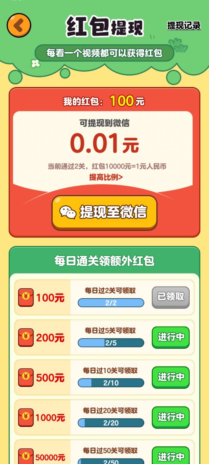 游戏引入了现金红包奖励机制,每成功解锁一关,即可获得随机红包奖励,红包金额累积可提现。