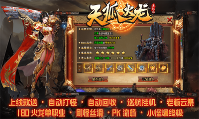 天狐火龙单职业是一款经典而刺激的单职业传奇游戏,在天狐火龙单职业中,玩家将扮演拥有强大力量的角色,探索广阔的大陆,挑战强大的敌人,还有超多副本可以解锁,寻找传说中的火龙宝藏。