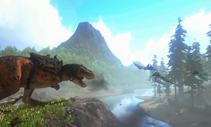 这种恐龙以其巨大的体型和长颈而闻名,玩家可以骑乘它们穿越森林和沼泽。