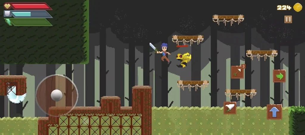 森林中的冒险是一款横版平台跳跃闯关游戏,在这里,每一次跳跃都是一次成长,每一场战斗都是一次历练。