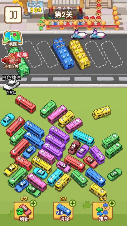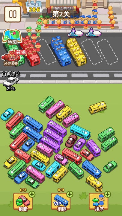 玩家需要点击并拖动车辆,巧妙利用车辆的移动顺序和路径,消除掉途中的障碍车辆,为最终目标创造条件。