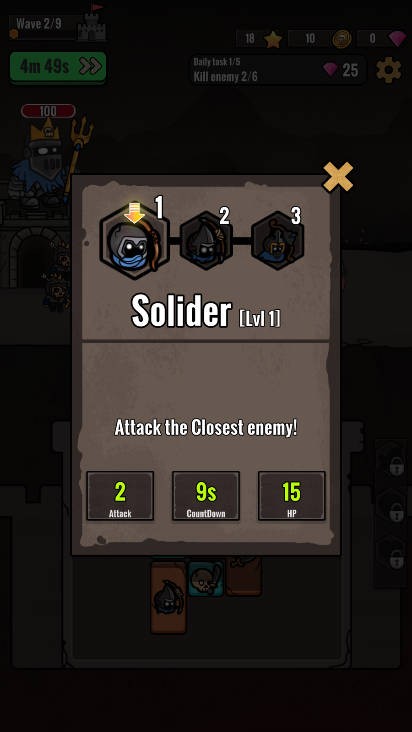 小小征服者是一款放置策略塔防游戏,在小小征服者中,结合背包管理与放置策略元素的独特玩法,在放置防御角色之前要规划好空格站位,才能发挥最强的力量,完成更多塔防挑战。