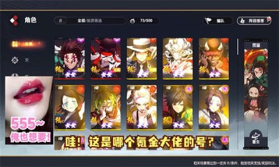 游戏中的卡牌角色均基于动漫《鬼灭之刃》进行设计和还原,包括角色的外观、技能和性格等方面。