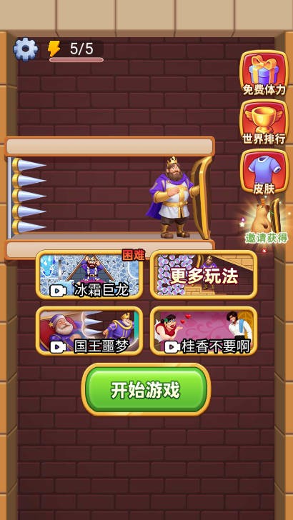 主角:有8种选择;篮球鸡、卡皮巴拉、小丑,各种国王公主