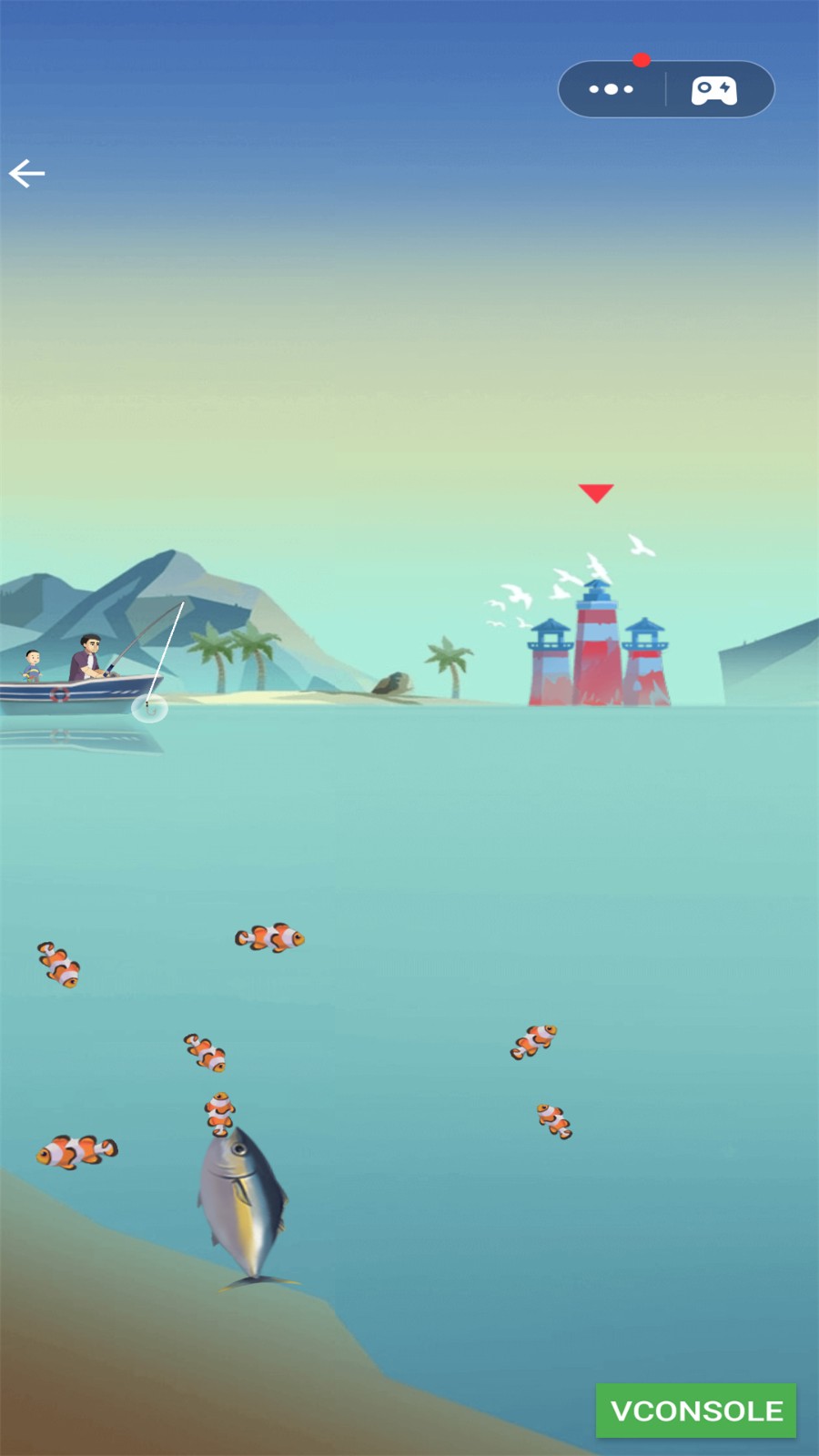3.站在随波起伏游船上、风景秀丽的岸边,抛出鱼饵后只需点击一个按钮,就能轻松钓鱼