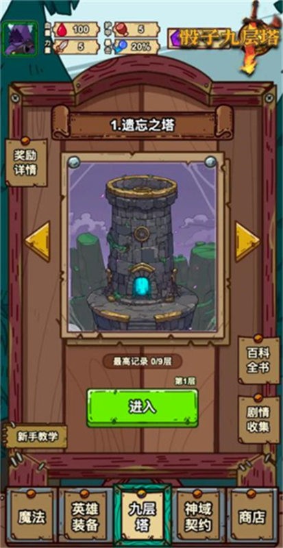 游戏中最核心的机制是魔法骰子。玩家在攀登高塔的过程中,需要依赖骰子的投掷结果来决定爬塔的进度和卡组顺序。