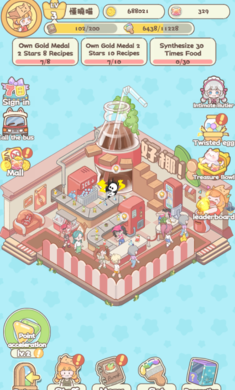 2.当顾客光临商店进行消费时,玩家可以获得金币,用于解锁和装修店铺。