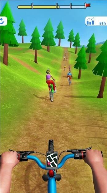 2、玩家可以通过倾斜设备或滑动屏幕来控制自行车的方向和平衡;