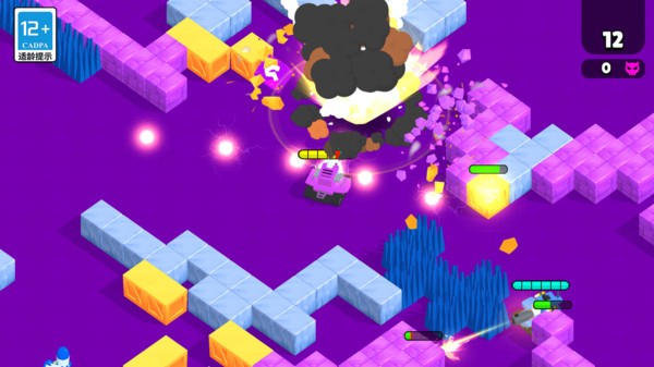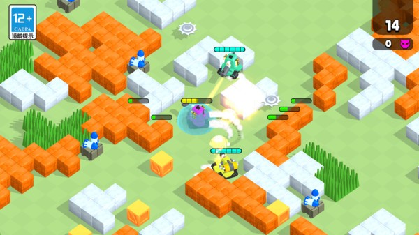 2.通过收集黄色方块来获得升级道具,提高坦克的属性和技能,从而在游戏中取得更好的成绩