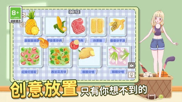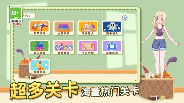 2.将所有的物品收纳到不同的位置进行得分,还有可爱的角色以及不同的模式可以选择
