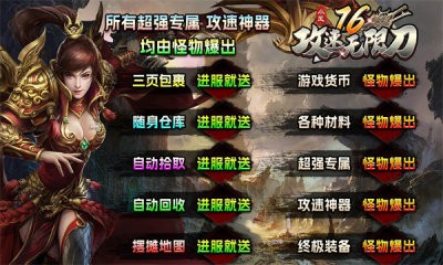 1.战士、法师和道士职业均配备了无限刀技能,配合高攻速,玩家可以体验到秒杀怪物的快感。