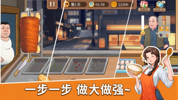 这款游戏结合了时间管理和模拟经营元素,挑战玩家在快节奏中做出明智决策,同时提供丰富的升级和个性化选项,让玩家体验从零开始打造成功卷饼店的成就感。