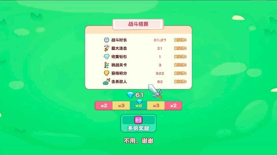 3.玩家可以通过闯关获得的金币和宝石,解锁并升级不同的武器和技能