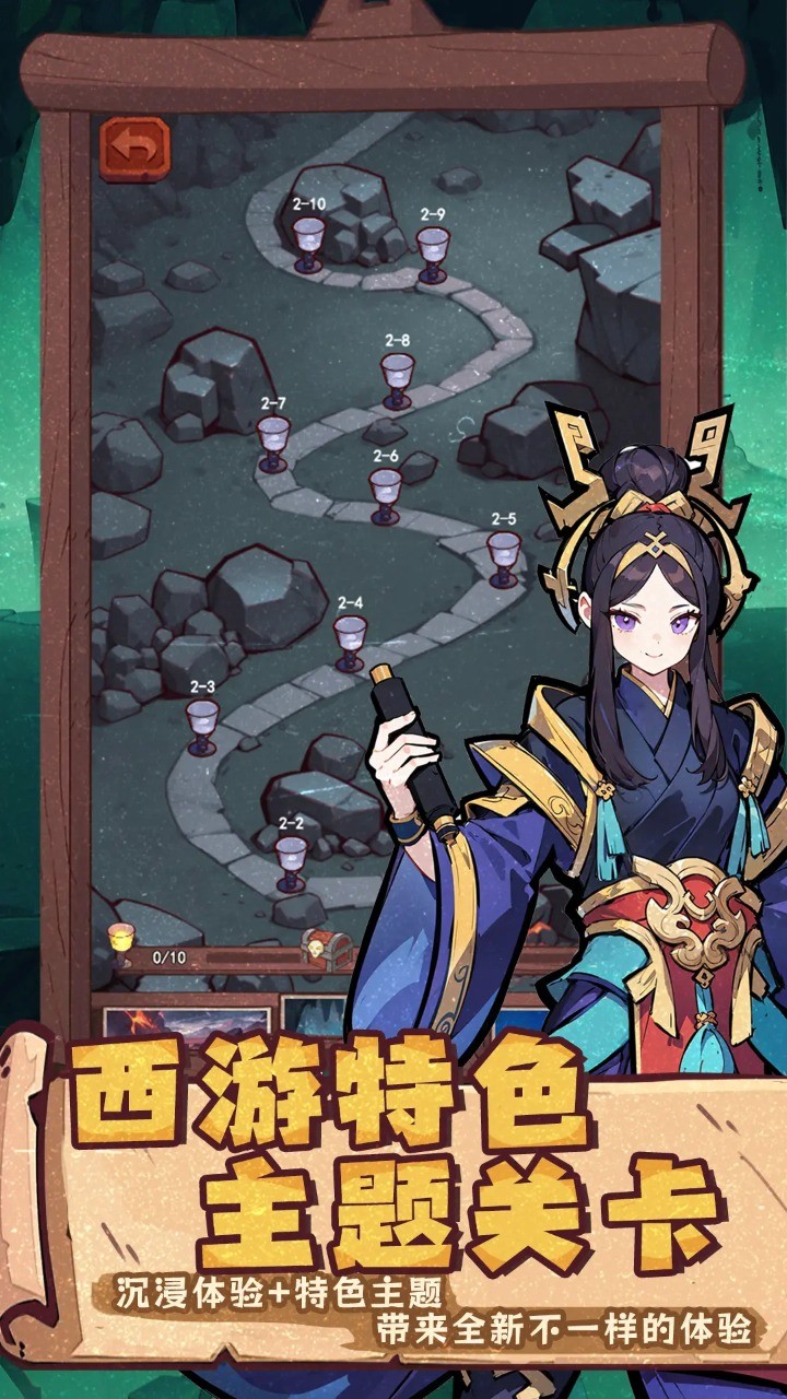 西天末法降临我带着西游特工队拯救众生是一款西游题材的策略卡牌游戏,西天末法降临我带着西游特工队拯救众生融合了rogue和塔防元素,玩家需要组合各个西游卡牌角色打造强力阵容,利用他们的技能和羁绊,干翻所有敌人