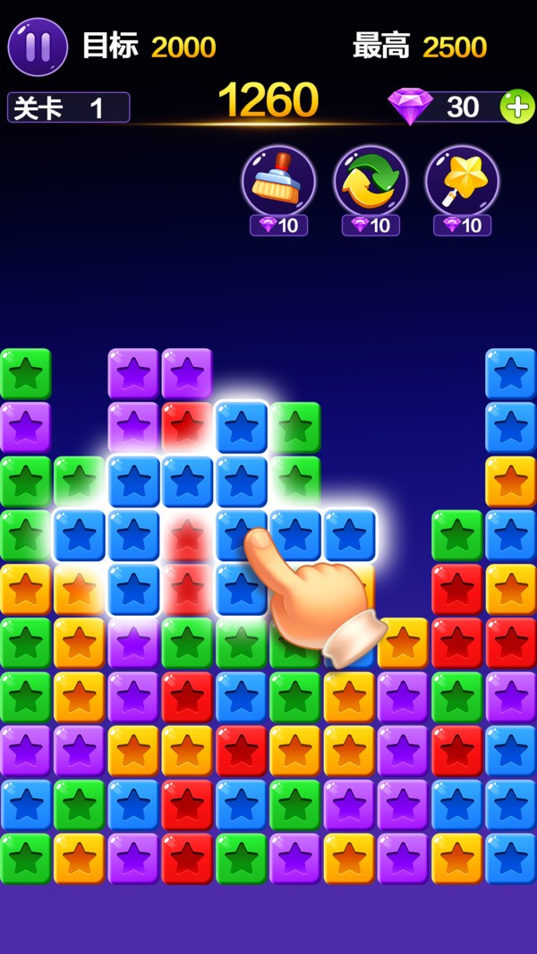 3.游戏中有各种道具和奖励,如炸弹、变色剂等,可以帮助玩家更快地消除星星,获得更高的分数。