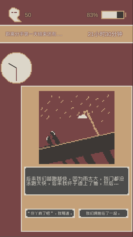 刚分手的24小时是一款像素画风的文字剧情向模拟游戏,玩家将体验一次痛彻心扉的分手。你需要亲身感受游戏角色从分手到疗愈的心路历程,为玩家带来了原创的故事剧情,你可以体验多元化的游戏体验,让你可以和游戏角色一起成长,快来下载体验吧!