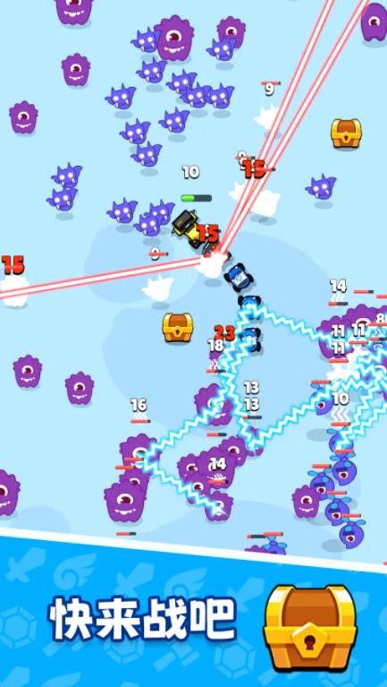 2. 解锁多样战车,每辆战车独特攻击方式,自由组合,打造最强阵容。