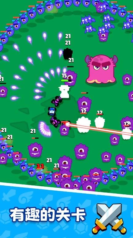 3、割草式战斗,轻松竖屏肉鸽对战体验。