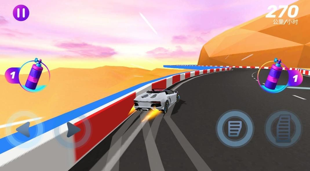 3.每一次转向都可能遭遇弹跳路障或突袭对手,用精准操作突破排行榜,成为赛道统治者