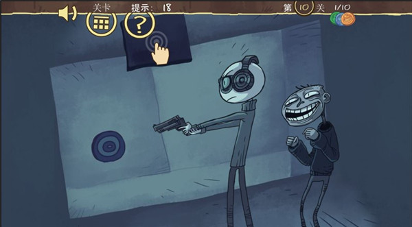 第十关:先点击计分板,开始进入倒计时,迅速点击右边的人脸就可以过关了。