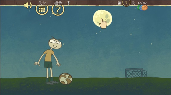 第三关:先点击天上的月亮,等月亮落地,然后点击月亮就可以过关了。