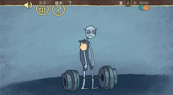 第二关:点击主角背后的充气筒,然后再点击杠铃就可以了。