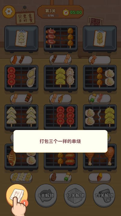串烧时光是一款趣味三消闯关小游戏,在串烧时光中,你将经营一家串串店,将相同的食材串在一起,完成顾客们的订单,解锁新的关卡,享受游戏的快乐。