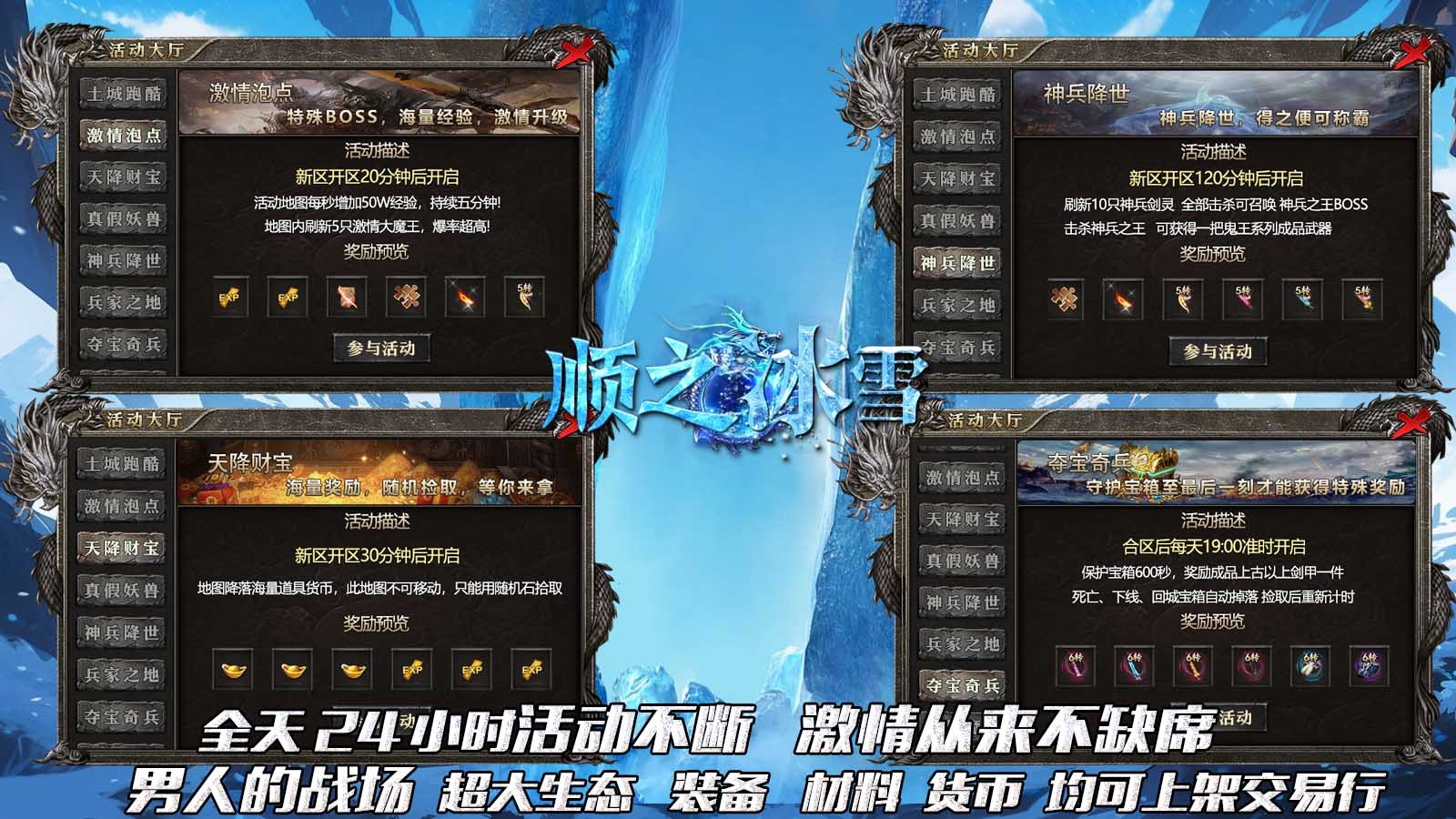 2.全天 24 小时活动不断、激情从来不缺席、超大生态、装备保值、散人追梦、爆率全开!