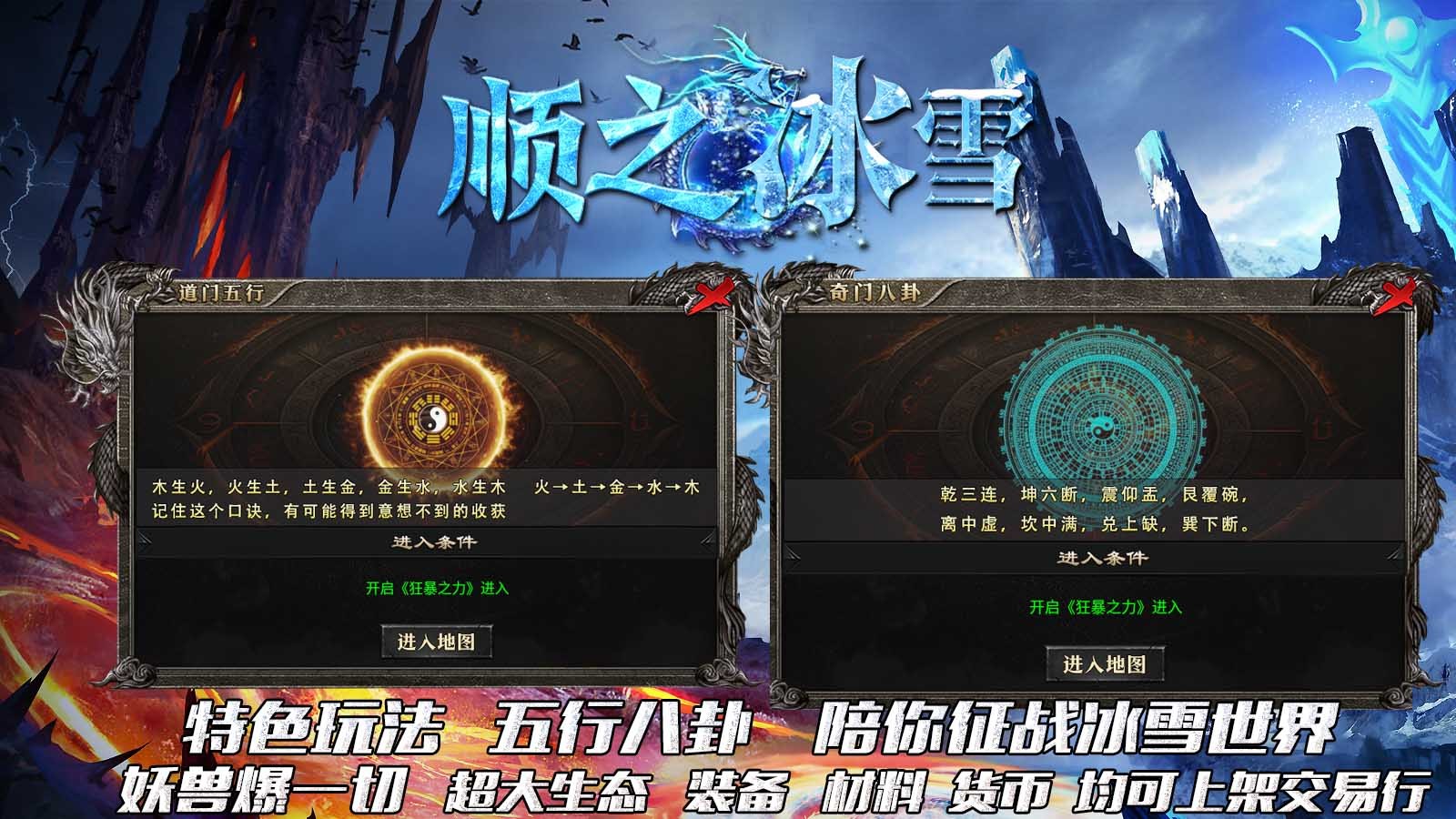 顺之冰雪是一款185微变冰雪传奇手游,在顺之冰雪中,超多福利狂送豪礼,装备、材料、货币均可上架交易,唯一赞助杀怪可得,30-60分钟即可满赞助,游戏内小怪可追梦,妖兽能爆一切