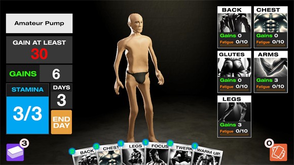 健身模拟器是一款3D卡牌模拟健身游戏,在健身模拟器中,用卡牌呈现了健身房的各种场景和训练动作,需要玩家合理搭配训练卡牌,打造属于你的健美身材。