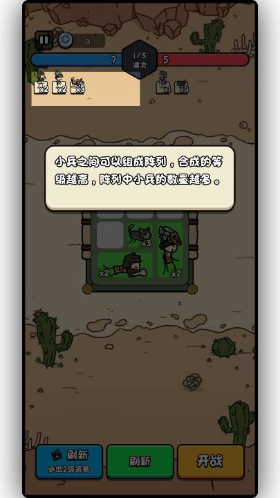 合了个兵是一款背包策略+放置对战游戏,在合了个兵中,玩家需要将兵种放置在背包空格中,合理选择出战的兵种,轻松放置合并升级,获得更加强大的力量,完成各种挑战。