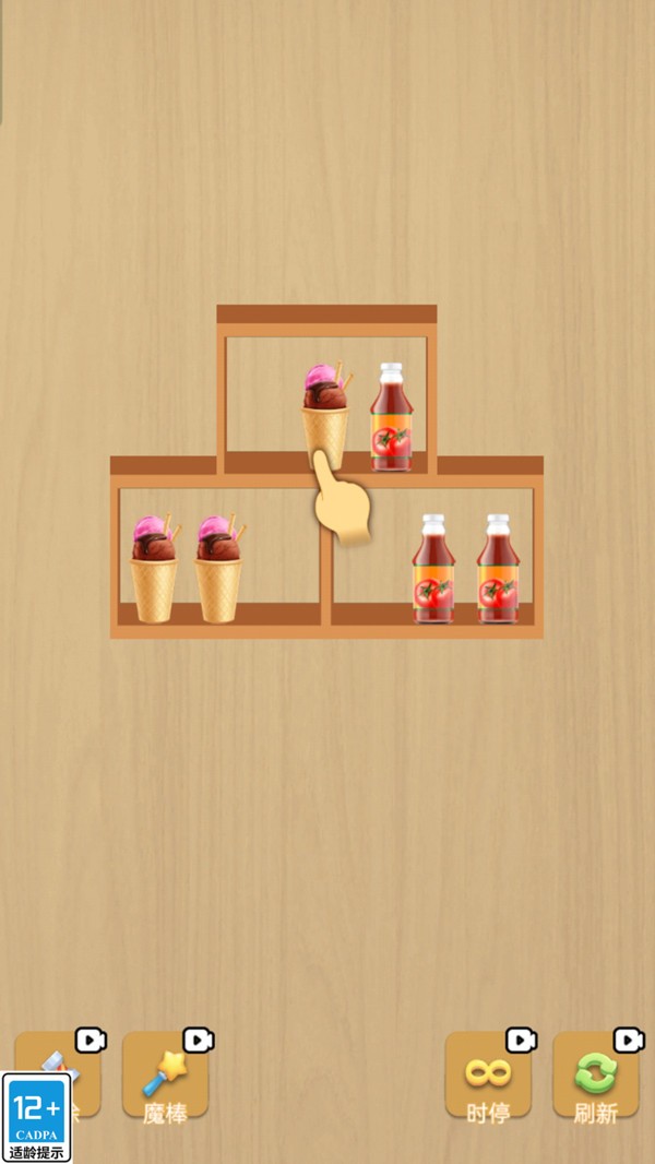 2.有多种商品种类,如食品、饮料、日用品等,只需要点击就能消除。
