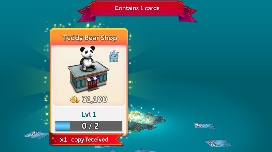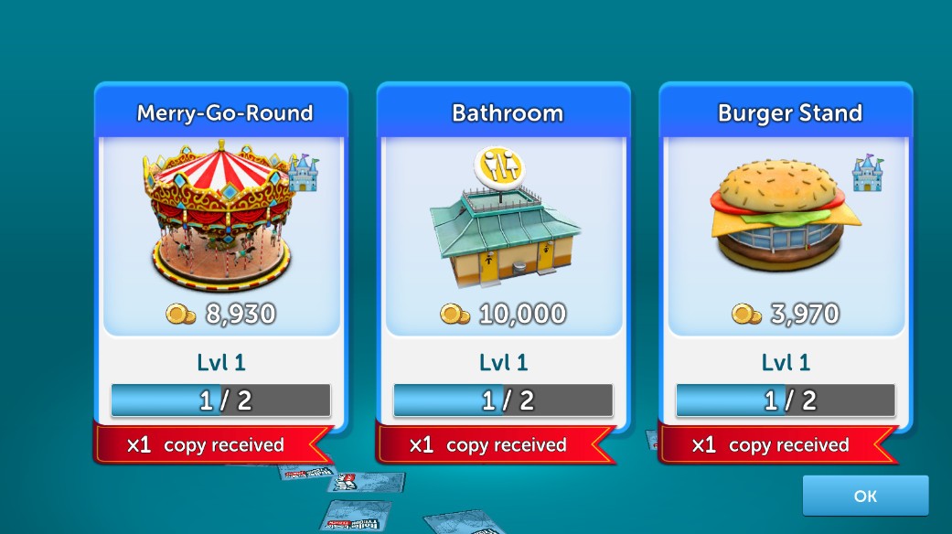 2.很多时候,完成任务或者升级就会获得卡包,有了卡包就可以开出各种各样的游乐设施啦