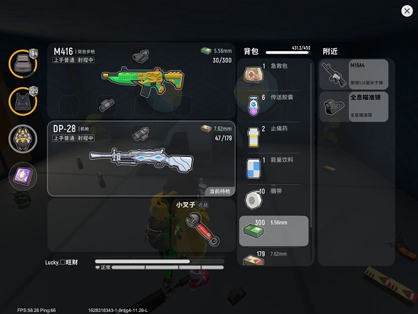 A:我们可以将一些四级枪/三级枪放进背包,以此来达到180w战备值,若还未达到,可以装备几个配件(下面是参考图)