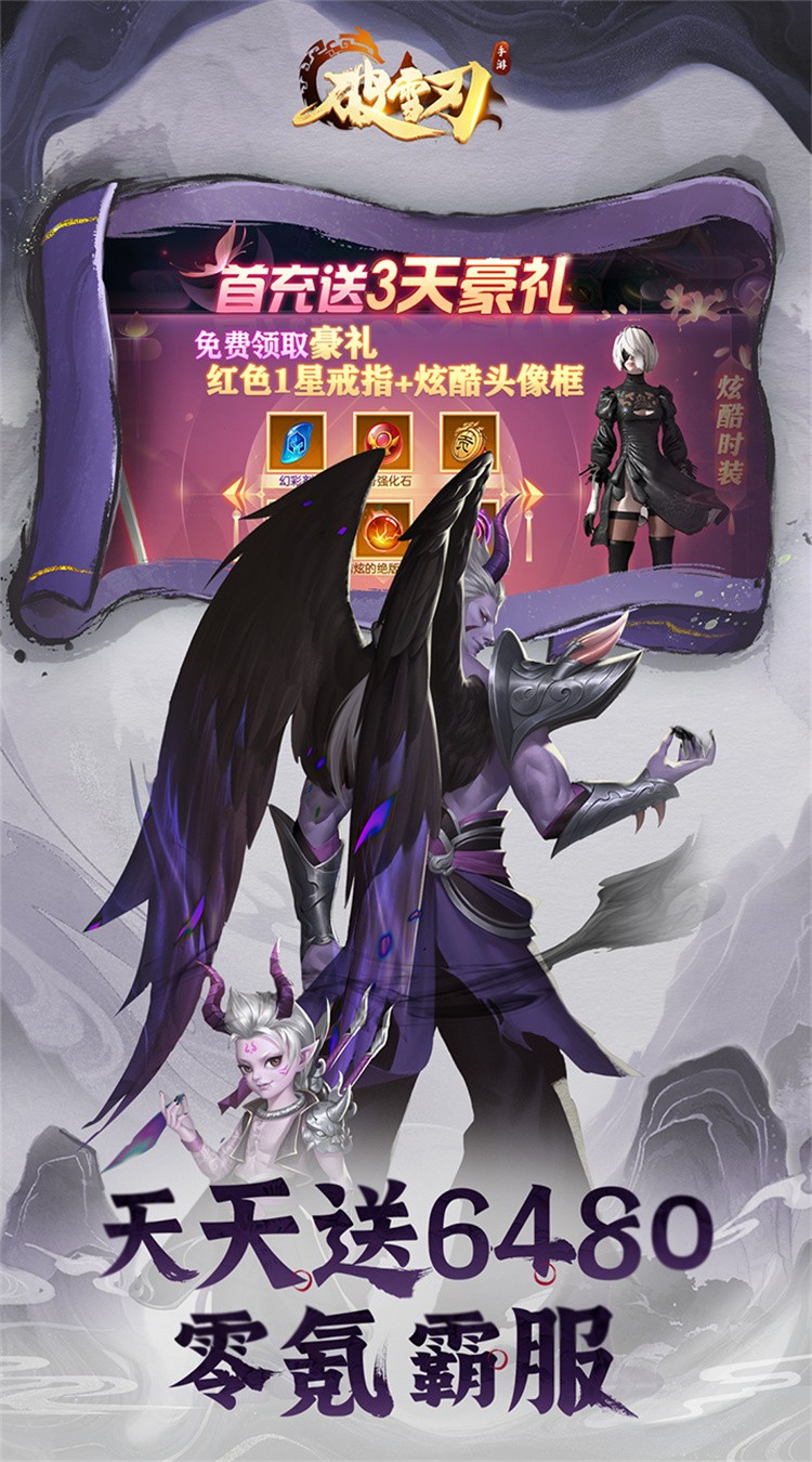 2.每日可开启两次6480元无门槛代金券,所有充值统统0.05折,极大地降低了游戏门槛。