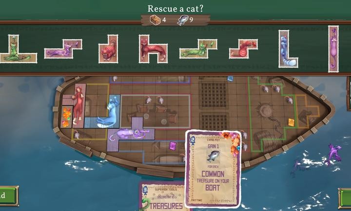 1.每位玩家都会获得一艘救援船,船上设有不同的区域,用于安置不同种类的猫咪。