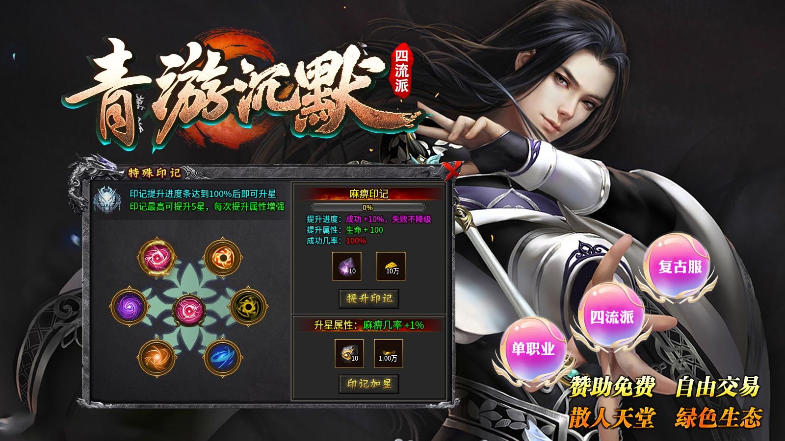 青游沉默四流派是一款单职业复古沉默传奇手游,在青游沉默四流派中,采用单职业四流派玩法,每个流派都有其独特的玩法与特性,可以搭配专属玩出更多花样,玩家上线就送自动回收和自动拾取,赞助免费,白嫖就能到顶