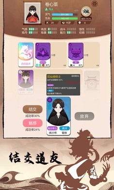 3.提升道友的修为、装备灵卡、分配资源等方式,培养道友的能力,使其成为你的得力助手。