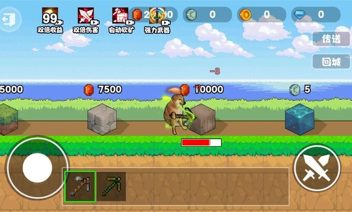 1.你需要用稿子敲击矿石,获取矿石资源,解锁各种强大的技能和属性,让你的稿子变得更加强大和高效。
