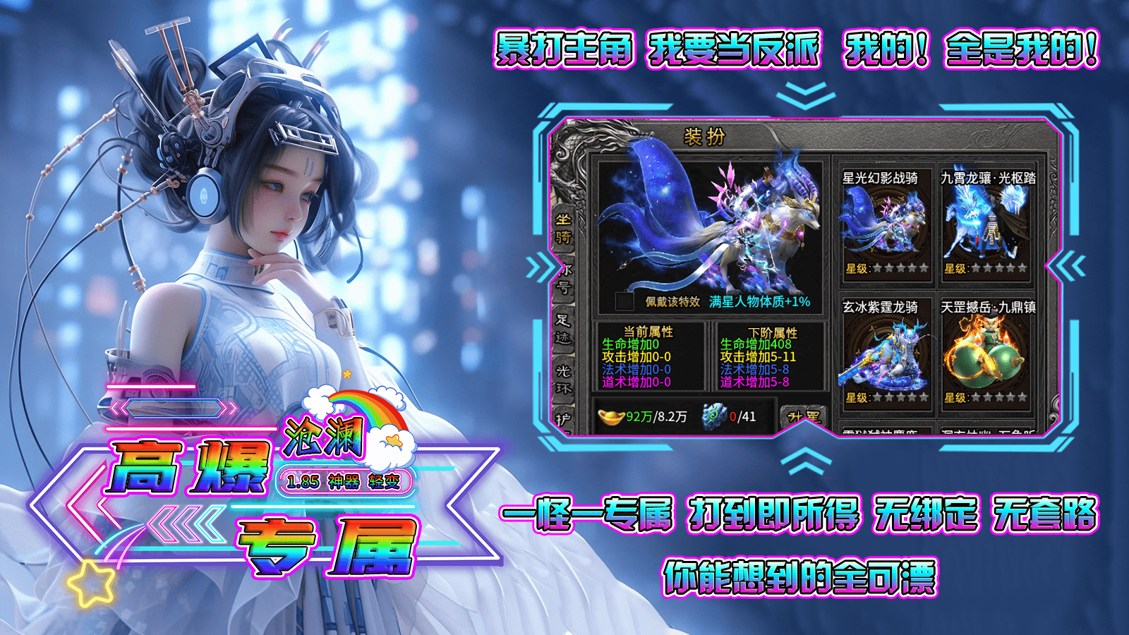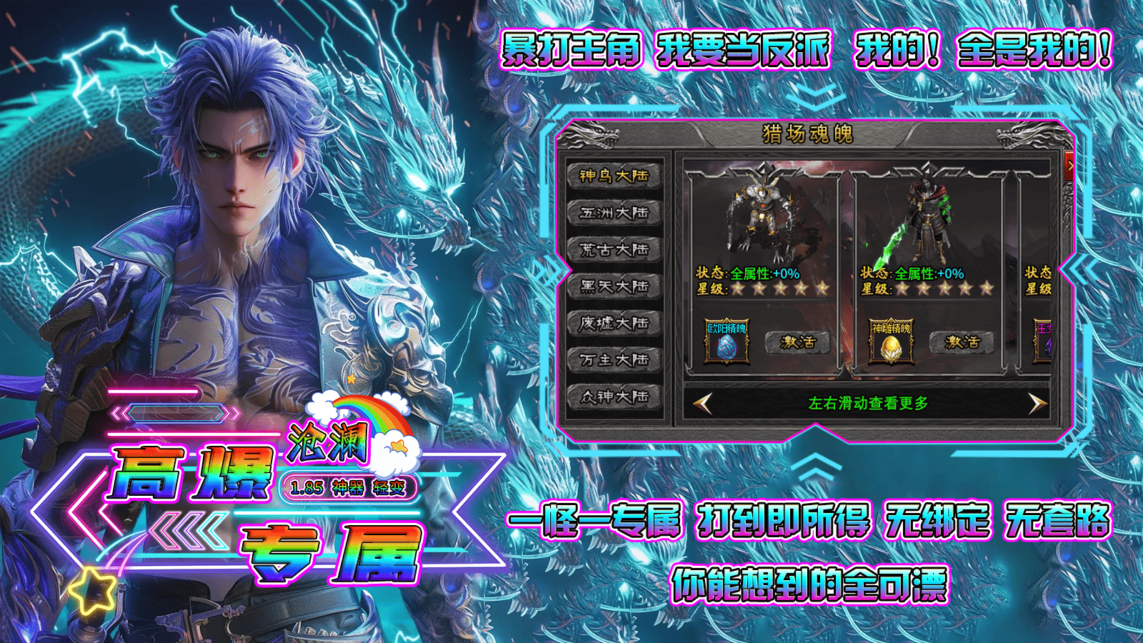 1.无需长时间肝材料或氪金,只需通过打怪、刷副本,就能轻松获取强大的神器,提升自己的实力。