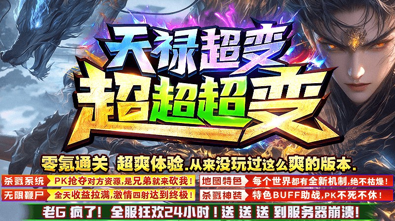 天禄超变超超超变是一款高爆类型的传奇游戏。天禄超变超超超变继承了传奇的经典元素,如战、法、道三大职业,同时加入了超变玩法,让玩家在熟悉的传奇世界中,体验到全新的冒险。