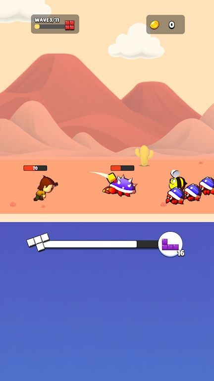 玩家需要拖动方块进行消除,成功消除可为角色积蓄能量,轻松释放强力技能,击败敌人。
