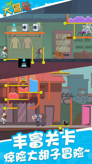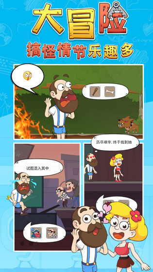 大冒险是一款脑洞大开的火柴人解谜闯关游戏。在每个关卡之中都有着一个特殊的漫画图形,我们要从这些漫画图形之中找到规律,用心选择,不要搞错,不然就一败涂地,从头再来。