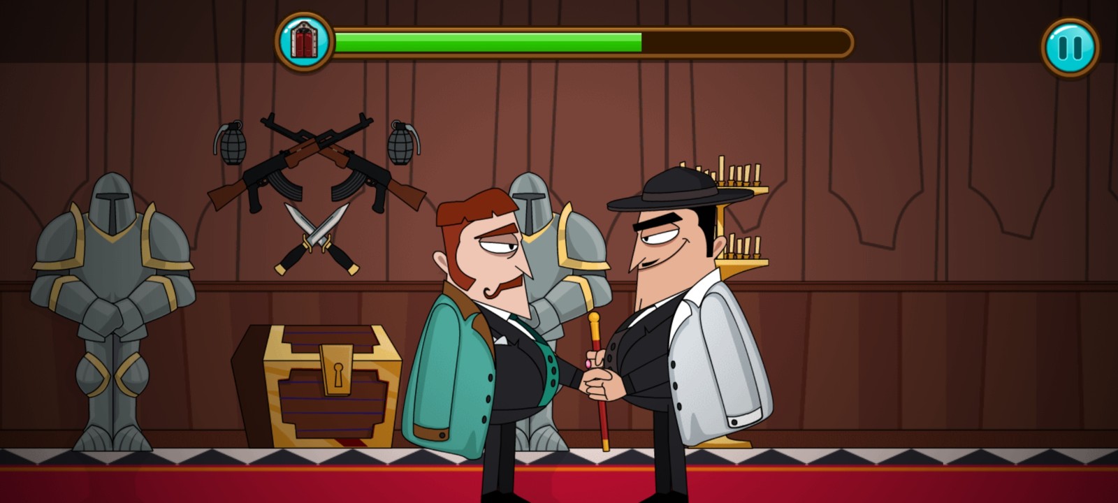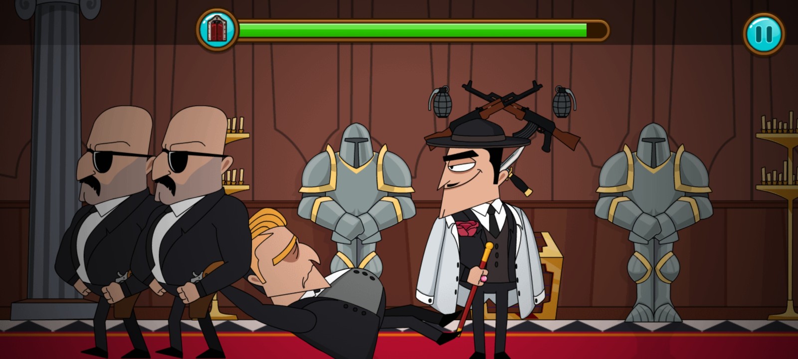 刺杀黑老大是一款趣味生存游戏,在刺杀黑老大中,玩家在游戏中扮演一名小弟,目标是成功刺杀黑老大,过程中需要躲避重重追杀和机关,最终成功走进大门。